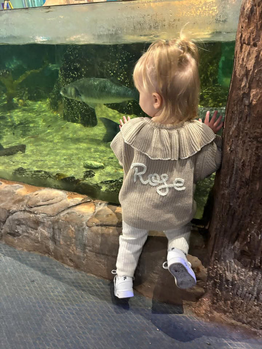 Beige frill cardigan with name only