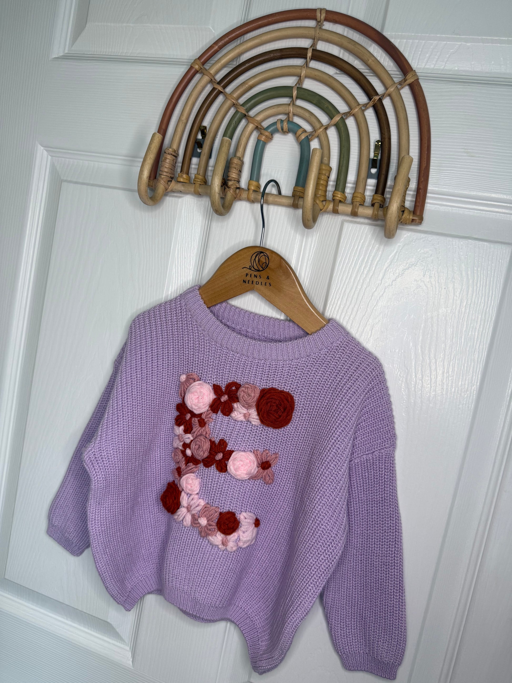 This is order is for a personalised name jumper with a floral initial on the front. Swipe through the pics to see a colour chart for the jumper colours and yarn colours. I can get pretty much any yarn colour if there’s one that you’re thinking that isn’t in the colour chart.